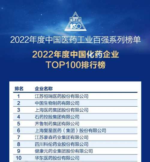 佳音频传!AG百家乐官网医药再次蝉联中国化药企业百强榜首